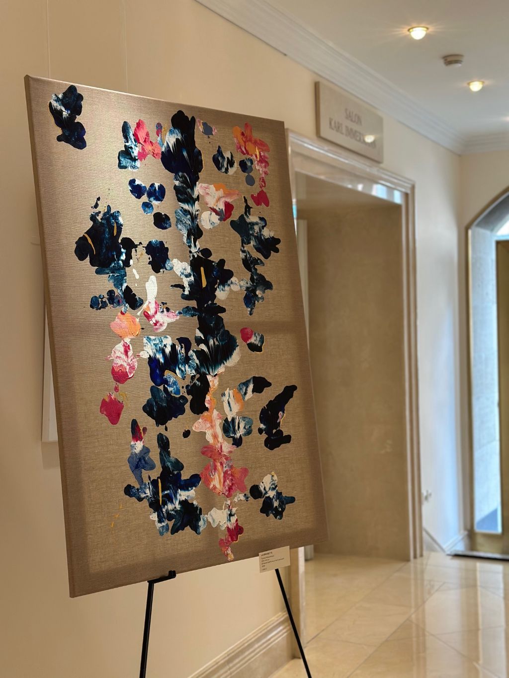 Ihre Werke vermitteln eine Atmosphäre von Ruhe, Eleganz und Harmonie, die durch die Verwendung von Goldakzenten zusätzlich betont wird. Je nach Licht und Perspektive entfalten sich neue Ebenen, die zur Auseinandersetzung einladen und den Blick über das Sichtbare hinaus öffnen.